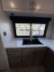 The kitchen in the Eagle is designed for culinary exploration, featuring reliable GE appliances, including a stove with an edge-to-edge grate and an easy-to-clean oven. The innovative all-in-one sink serves multiple functions, offering versatility for both preparation and cleanup. Ready for outdoor cooking? The optional Halo Griddle is perfect for your adventures, featuring a windproof design, dual-zone burner, and a temperature range from 300 to 500 degrees—perfect for grilling whatever inspires you. And when the weather shifts, the foldable dinette chairs and pivoting table with an outlet below let you quickly turn the indoor office space into a cozy dining area. Set the perfect ambiance with the "Blue Sync" audio system and MB Quart speakers, delivering high-quality sound for any setting.