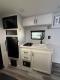 Inside, you’ll find solid hardwood cabinet doors with hidden hinges, giving the space a modern, residential feel. Oversized cabinets and under-bed storage ensure there’s room for everything you need, while the lit exterior passthrough storage makes packing and unpacking a breeze.