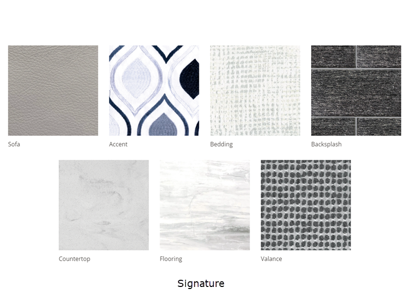 Sleeps 5 Slides 3 Length 40 ft 1 in Ext Width 8 ft 6 in Ext Height 12 ft 10 in Int Height 7 ft Interior Color Serenity, Anthology, Signature, Amaretto Exterior Color Carezza, Constellation, Hourglass, Montezuma, Plantation, Rendezvous Hitch Weight 10000 lbs GVWR 36600 lbs Fresh Water Capacity 105 gals Grey Water Capacity 75 gals Black Water Capacity 50 gals Tire Size 275/80R 22.5H Generator 8kw Onan Quiet Diesel Fuel Type Diesel Engine Cummins L9 Chassis Freightliner Custom XCM Horsepower 380 hp Fuel Capacity 100 gals Wheelbase 263 in Available Beds King Torque 1150 ft-lb Refrigerator Type Residential w/Ice and Water In Door Convection Cooking Yes Cooktop Burners 2 Shower Size 50" x 28" Number of Awnings 1 Axle Weight Front 12600 lbs Axle Weight Rear 24000 lbs Water Heater Type Aqua Hot 400D AC BTU 45000 btu Basement Storage 142 cu. ft. TV Info LR Pop-Up LED TV, Cab TV, BR LED TV, Ext. LED TV Awning Info 18' Power w/LED Lighting & Motion Sensor Retract Washer/Dryer Available Yes Gross Combined Weight 46600 lbs Shower Type Shower w/Seat Electrical Service 50 amp Similar Floorplans