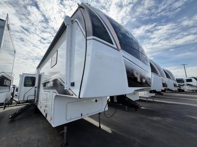 With any Eagle fifth wheel by Jayco you will appreciate durable construction materials, like the Magnum Truss Roof and the Stronghold VBL laminated walls. The JAYCOMMAND Smart RV system puts you in control of your RV's functions, and the 4 Star Handling Package will provide smooth towing from home to camp. Each model features Climate Shield zero-degree tested weather protection and the industry-exclusive HELIX cooling system that features two 15,000 BTU Whisper Quiet A/C's to keep you comfortable during those colder months. Some of the exterior conveniences you are sure to love are the pass-through storage with Slam-Latch baggage doors and an automotive style front cap with max turn radius. The Eagle fifth wheels are designed to make you feel at home with solid surface countertops, residential vinyl flooring throughout, 100% no floor vents, and blackout roller shades with reflective side throughout for added privacy and insulation.
