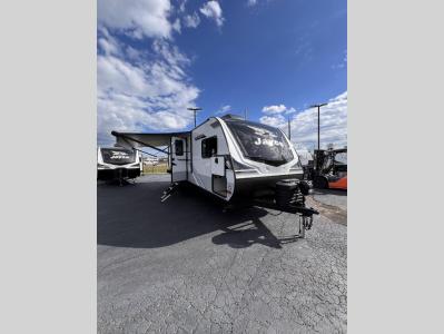 With any Jay Feather travel trailer by Jayco, you will enjoy lightweight towing, convenient exterior amenities, and at-home comforts inside! The Overlander 1 Solar Package included within the Jay Sport Package comes with a 200W solar panel and a 30-amp digital controller so you can enjoy some off-grid camping. There is also a modern graphics package, Solid fold-down step with aluminum tread steps on the main entry doorstep, and Climate Shield 0 -100° F tested weather insulation package that will allow you to camp in various types of climates. The Customer Value Package will make time outdoors easier than ever with a power tongue jack and Automotive-style aluminum rims, plus radial tires with self-adjusting electric brakes. More exterior features include a Keyed-Alike doors, a Magnum Truss roof system, and the list goes on! And we haven't even touched on the interior comforts, like the seamless countertops and Residential vinyl flooring throughout, decorative kitchen backsplash, handcrafted hardwood door/drawer fronts, and multiple USB charging ports to keep you going!