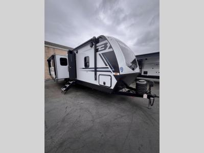 Weekend trips to the campground are made easy in this travel trailer! There are dual opposing slides in the combined kitchen and living area to provide you with ample space to stretch out. A kitchen island will come in handy when prepping meals, plus you'll have all the appliances needed to cook them. You will find comfortable seating on the rear tri-fold sofa sleeper, Do-More dinette table, and theater seats across from the entertainment center and fireplace. When you're ready to call it a night, the front private bedroom with a queen bed will be calling your name, and the full bath onboard will let you freshen up each day!